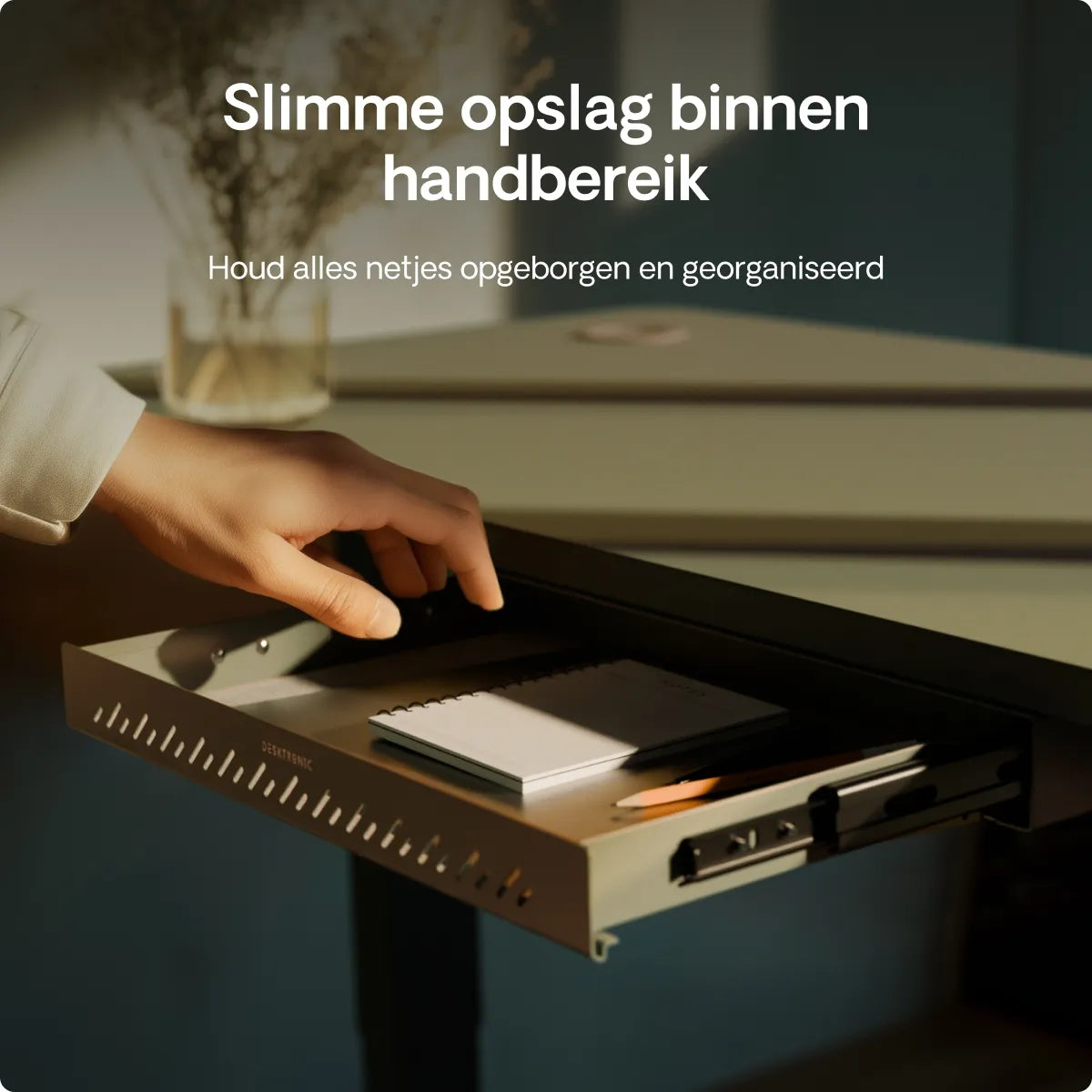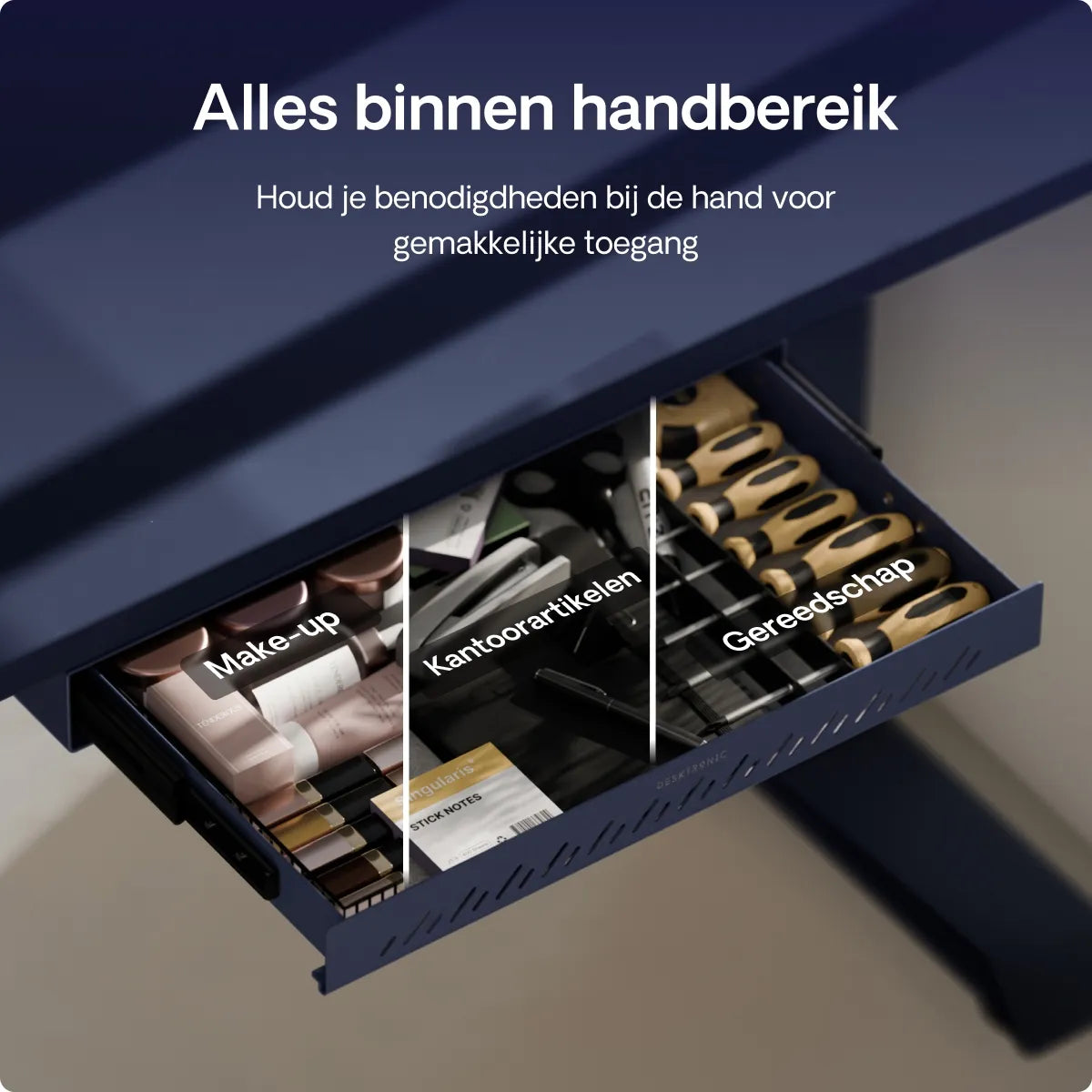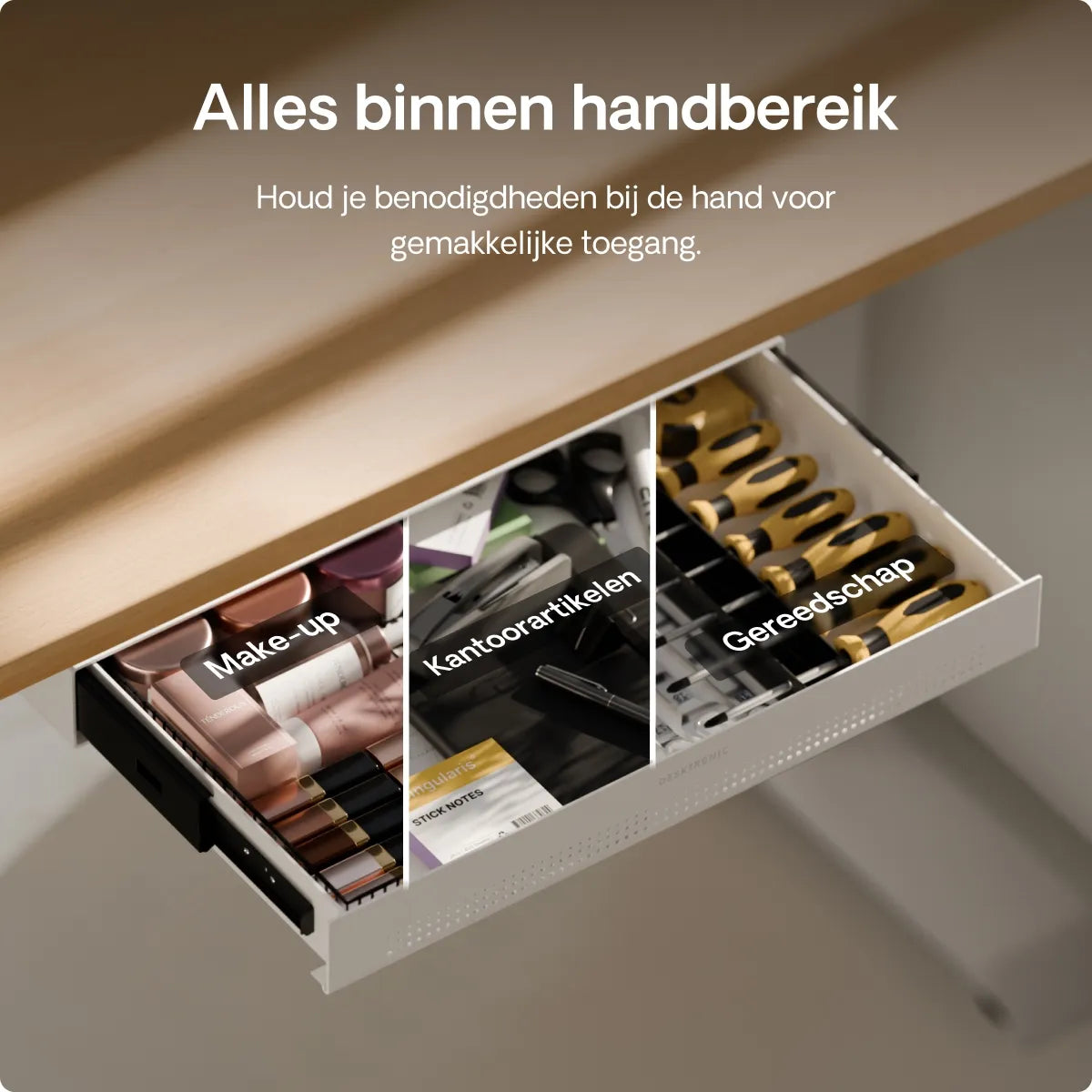 De Bureaulade wordt geprezen om zijn slanke profiel, stevige metalen constructie en soepel glijdende rails die elke keer geruisloos openen. Kopers waarderen de ruimte die hij biedt voor documenten en benodigdheden, waardoor bureaus overzichtelijk en opgeruimd blijven. Duurzaam en stijlvol, met 2 jaar garantie, is het een grote verandering die het dagelijkse werk gemakkelijker maakt.