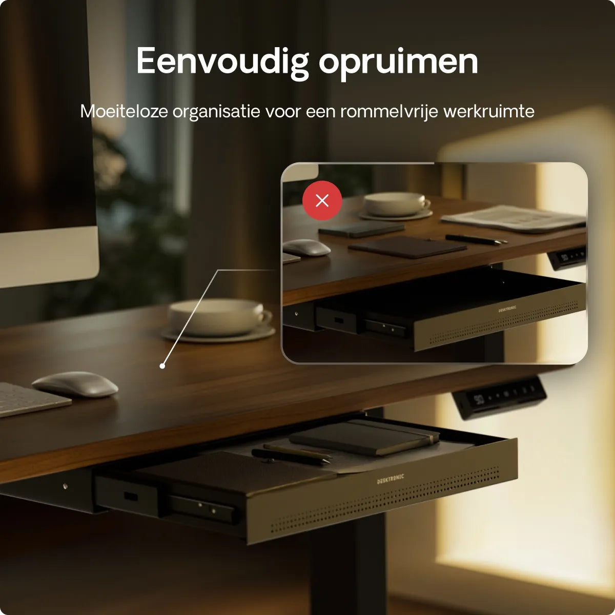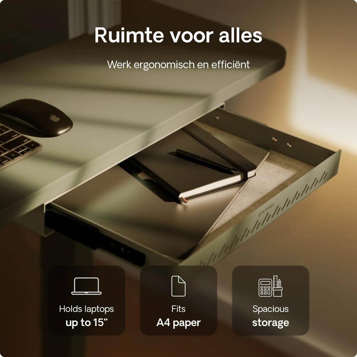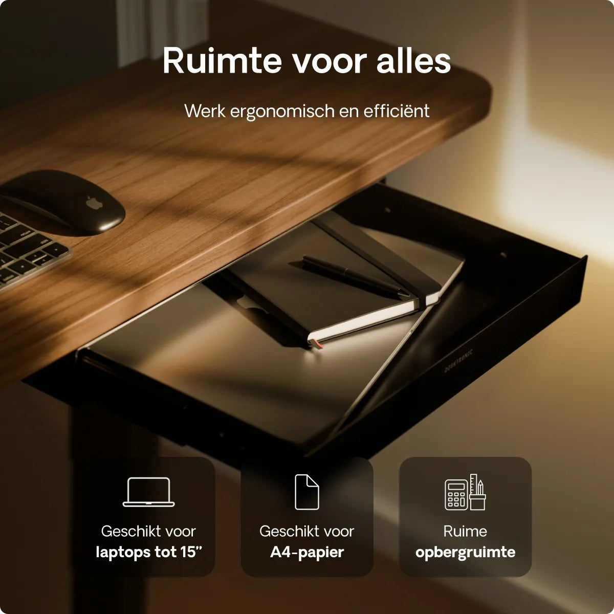 De Bureaulade wordt geprezen om zijn slanke profiel, stevige metalen constructie en soepel glijdende rails die elke keer geruisloos openen. Kopers waarderen de ruimte die hij biedt voor documenten en benodigdheden, waardoor bureaus overzichtelijk en opgeruimd blijven. Duurzaam en stijlvol, met 2 jaar garantie, is het een grote verandering die het dagelijkse werk gemakkelijker maakt.