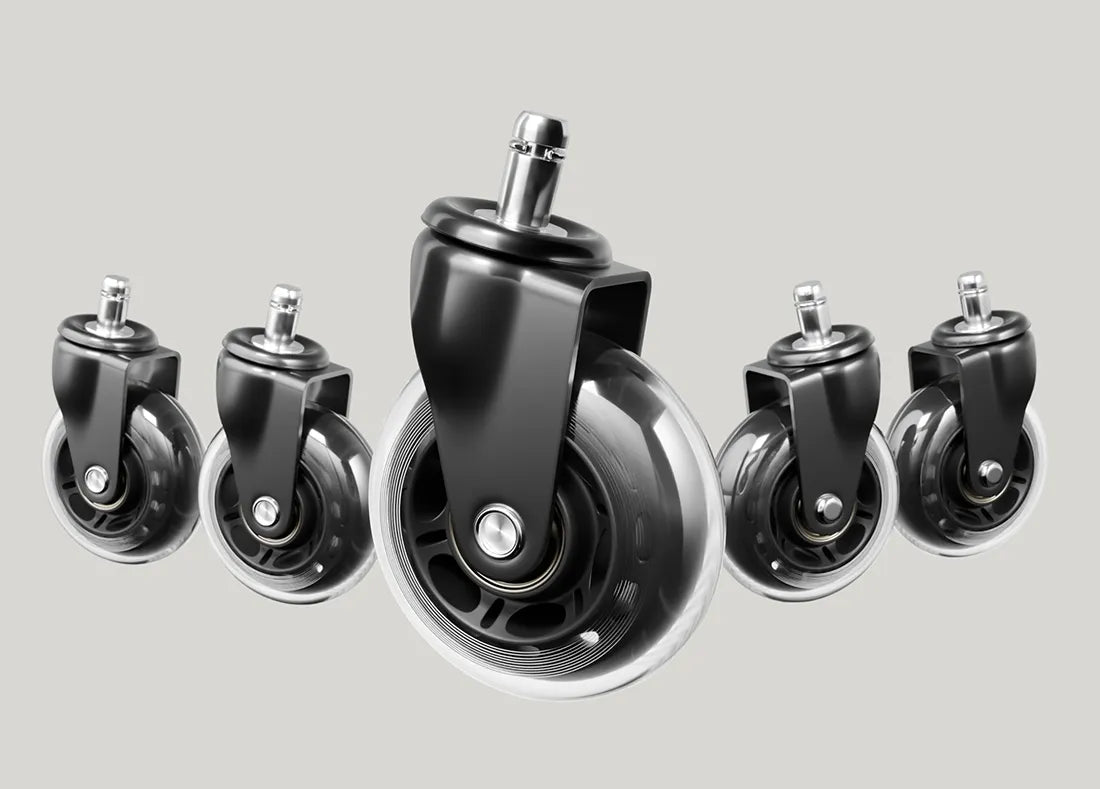 Beweeg soepel alsof je over een gladde ijsbaan glijdt. Dankzij de 360-graden rotatie en het hoogwaardige rubbermateriaal zorgen onze zwenkwielen ervoor dat je bijna geruisloos over de vloer glijdt.