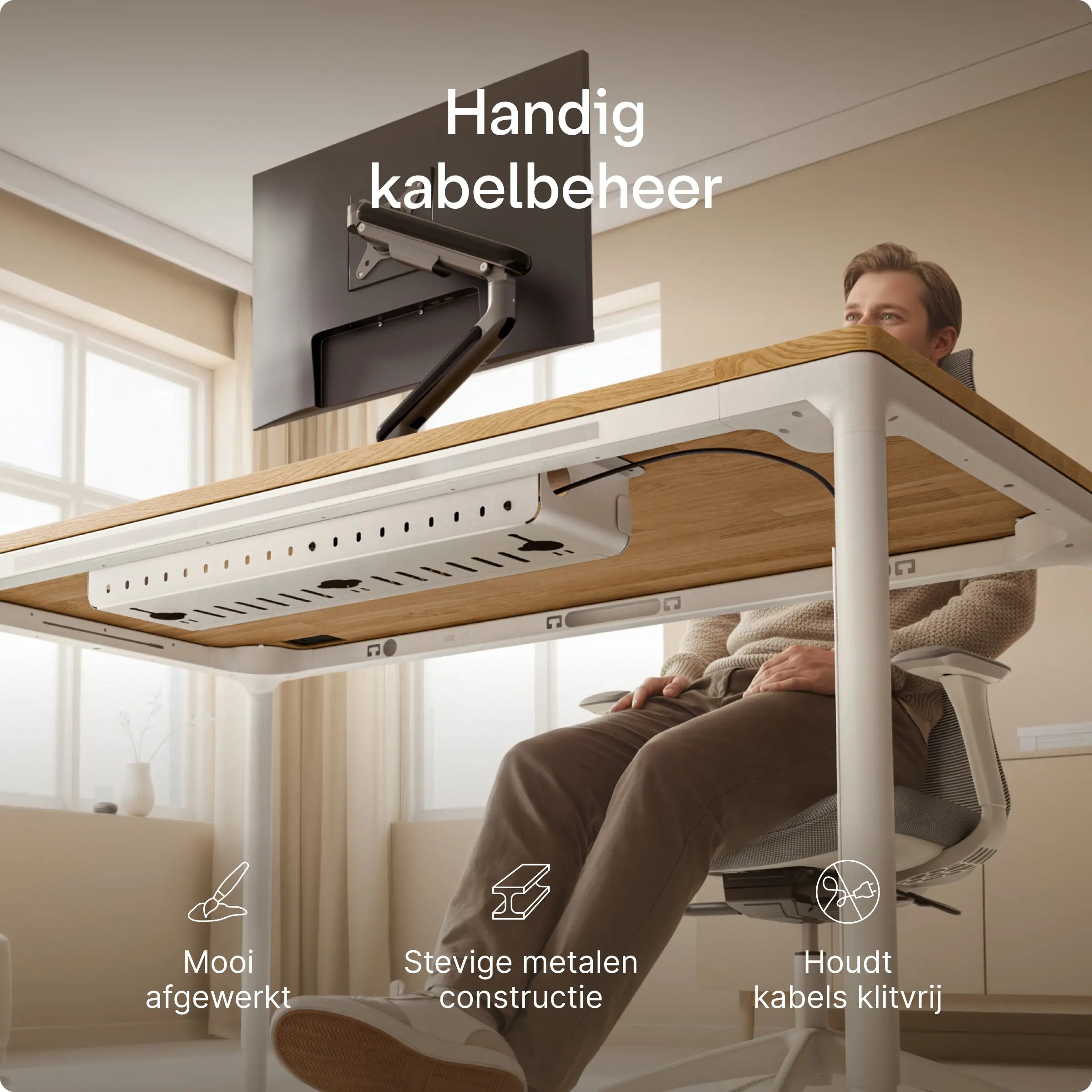 Cable Management Pro is gemaakt van gepoedercoat staal voor duurzaamheid en dagelijks gebruik.