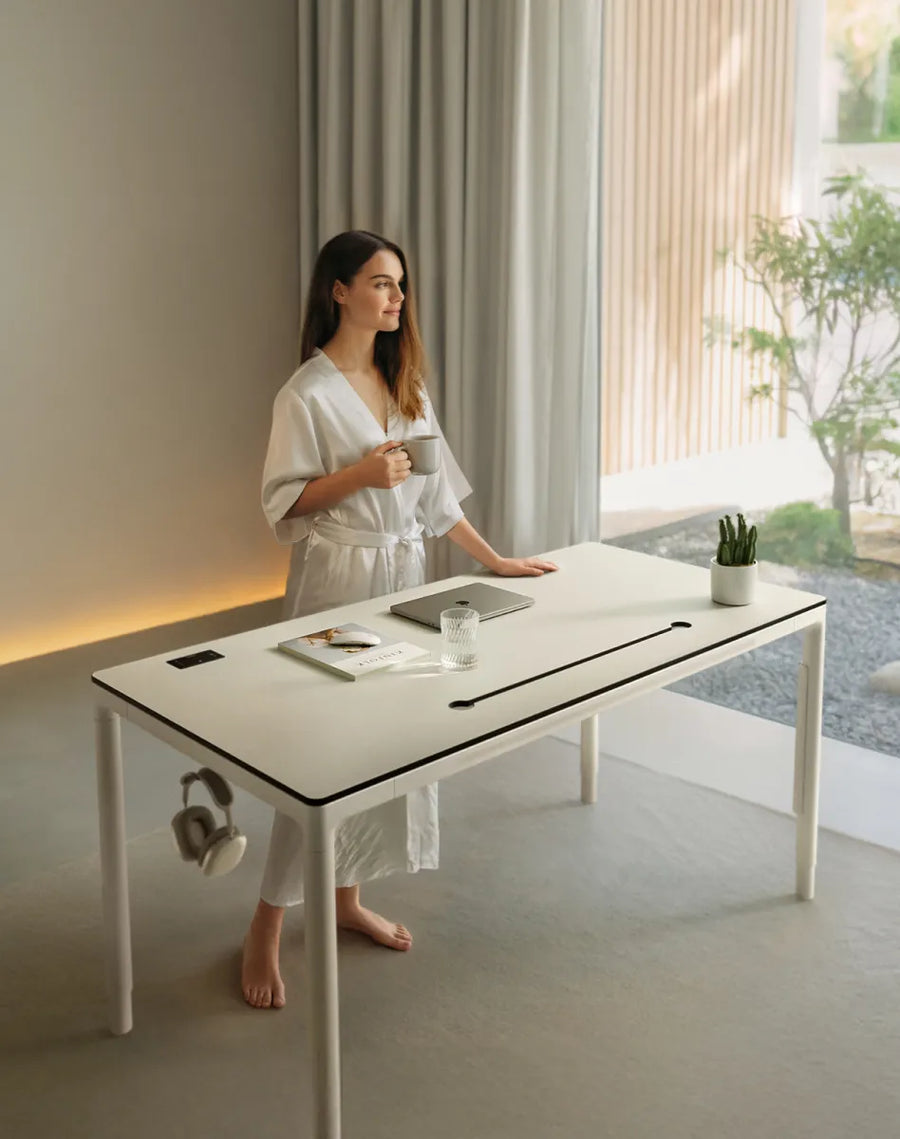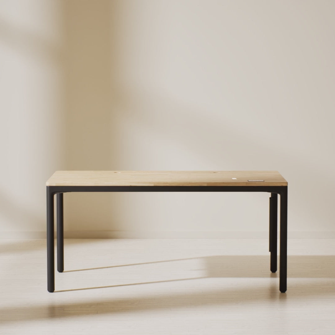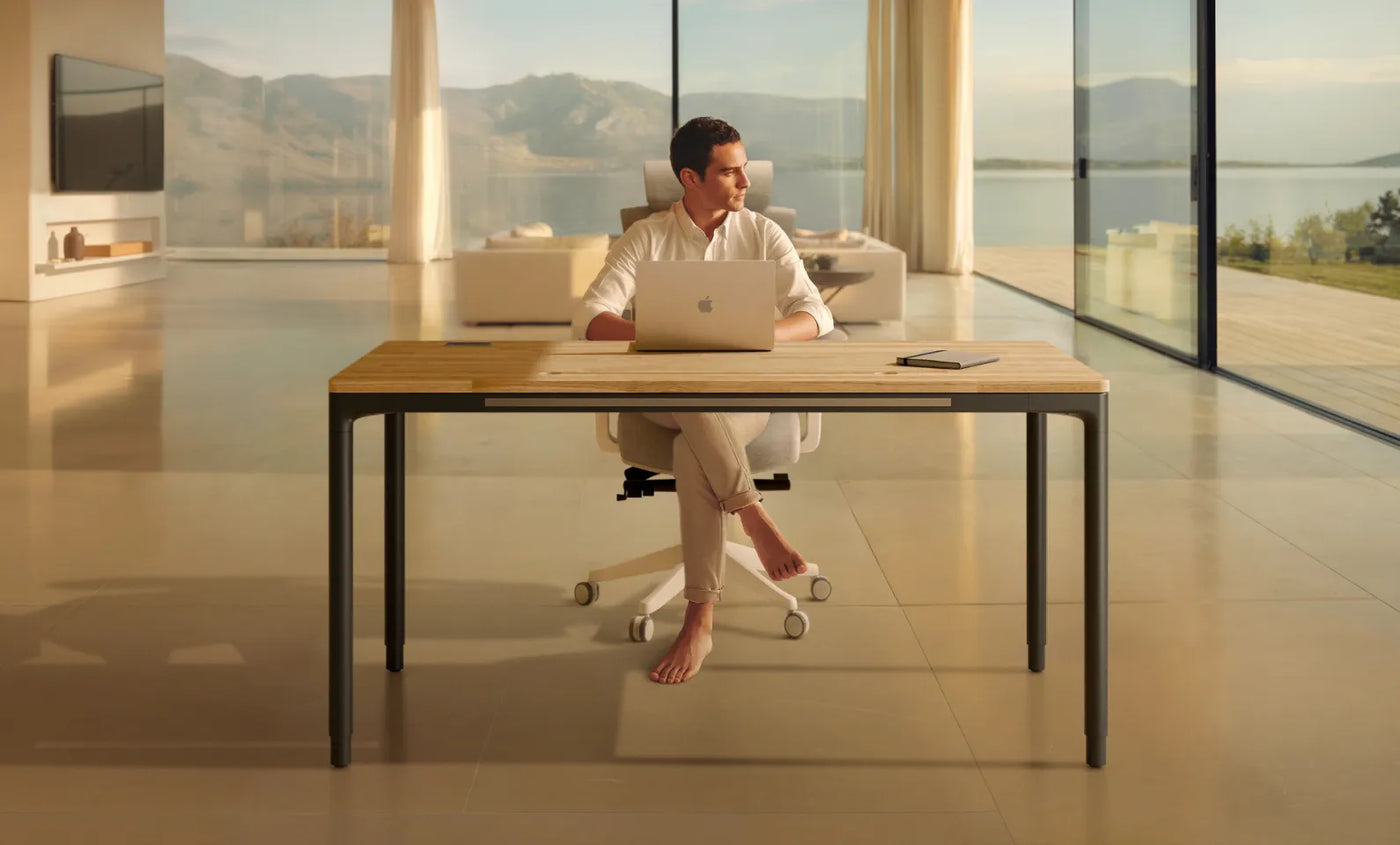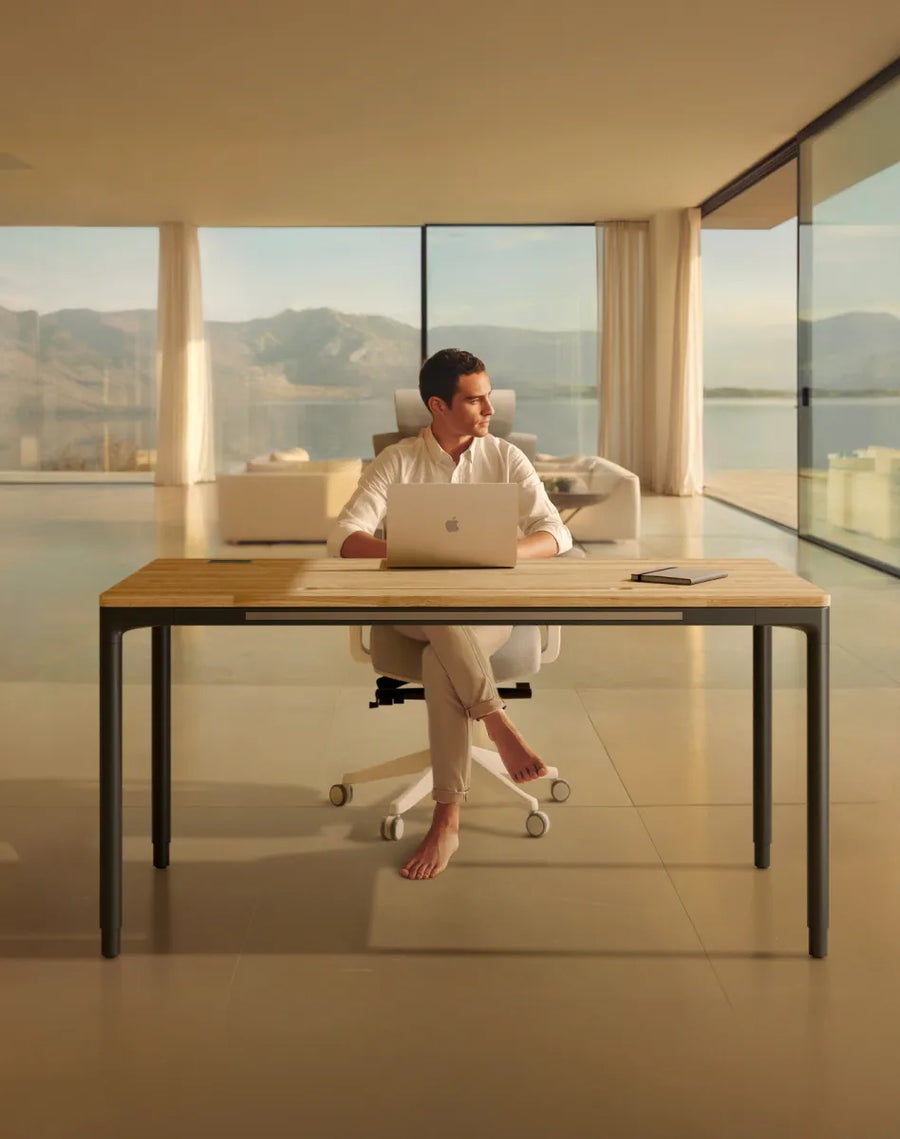 Kies uit supersterk compact, natuurlijk massief hout of duurzaam bamboe. Het superlichte ontwerp en de gladde, afgeronde hoeken zorgen voor comfort, veiligheid en een tijdloos design. Allemaal gemaakt rond het sta-bureau met vier poten dat is ontworpen om met je mee te bewegen.
