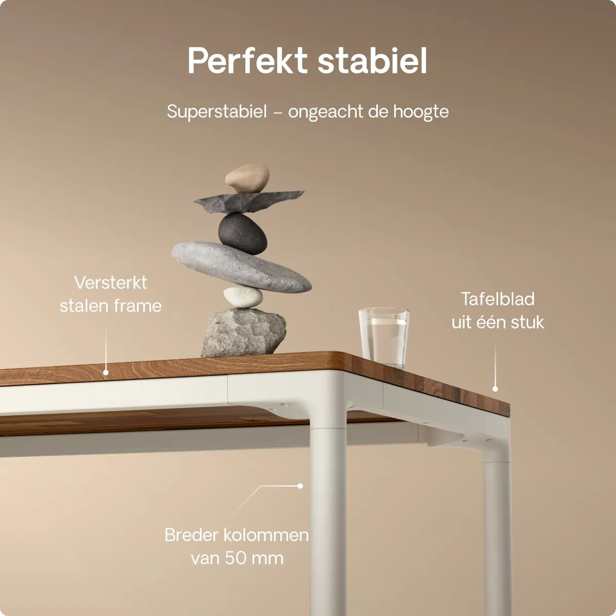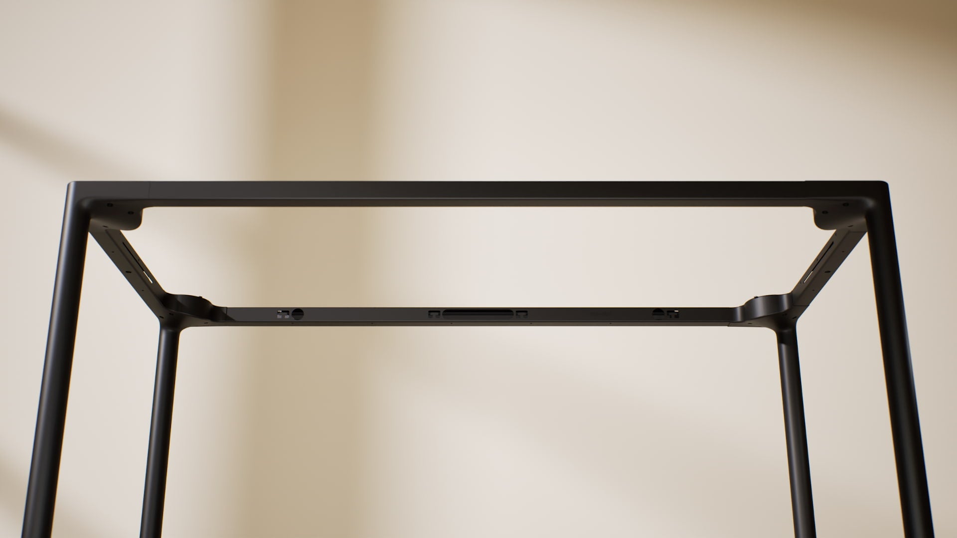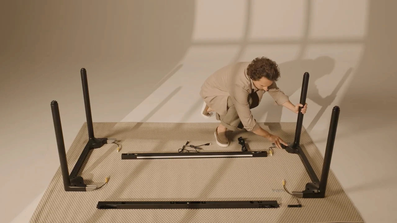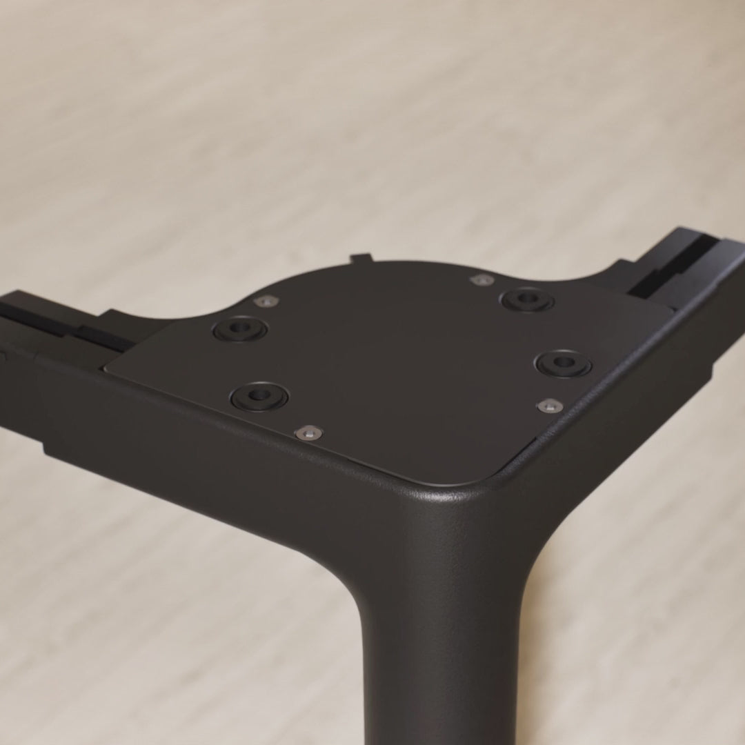 Het elektrische frame met vier poten en bredere, versterkte kolommen zorgt voor een superstabiele basis op elke hoogte: geen trillingen, geen wiebelen, geen compromissen. Met een draagvermogen tot 100 kg blijft elke opstelling veilig staan.