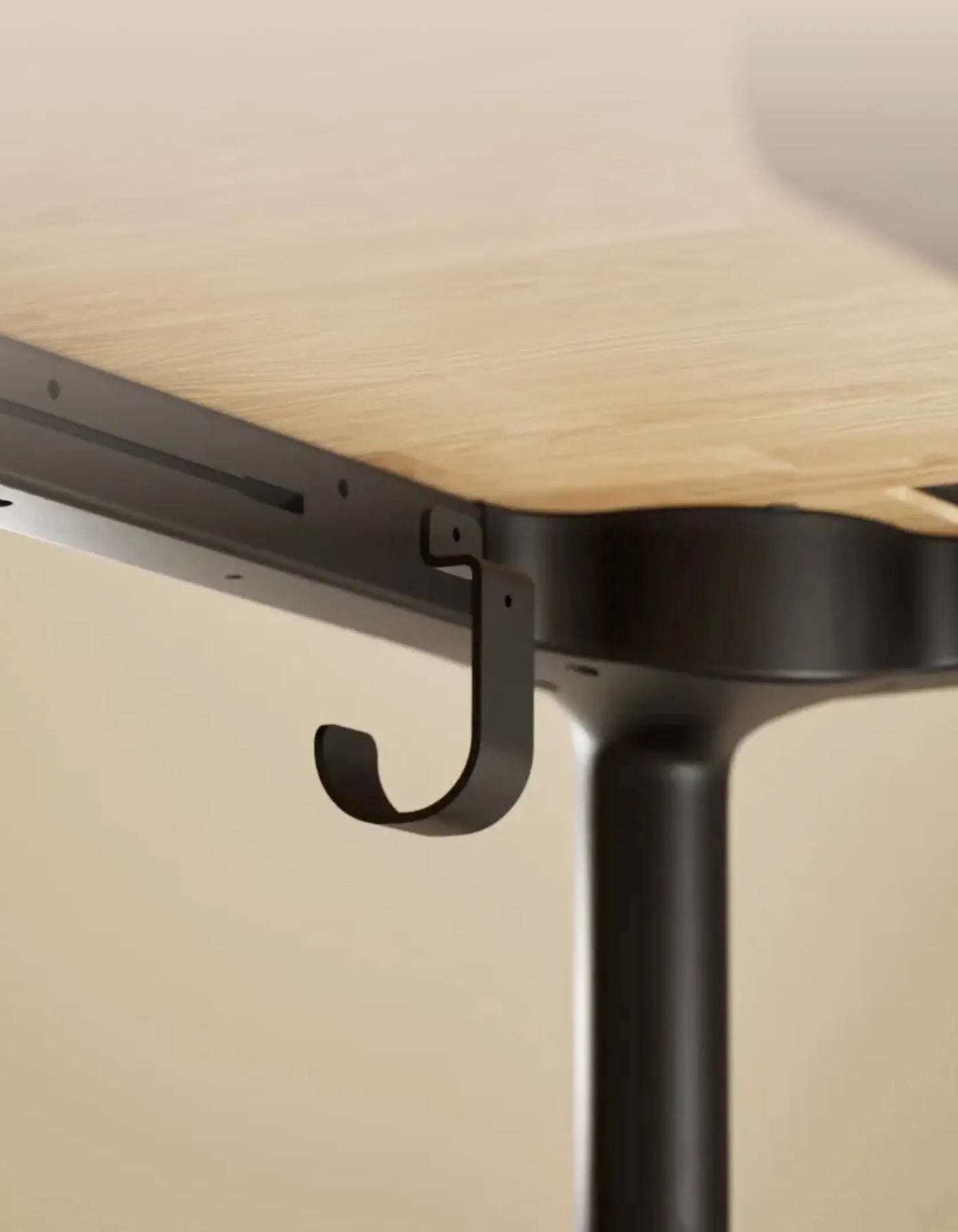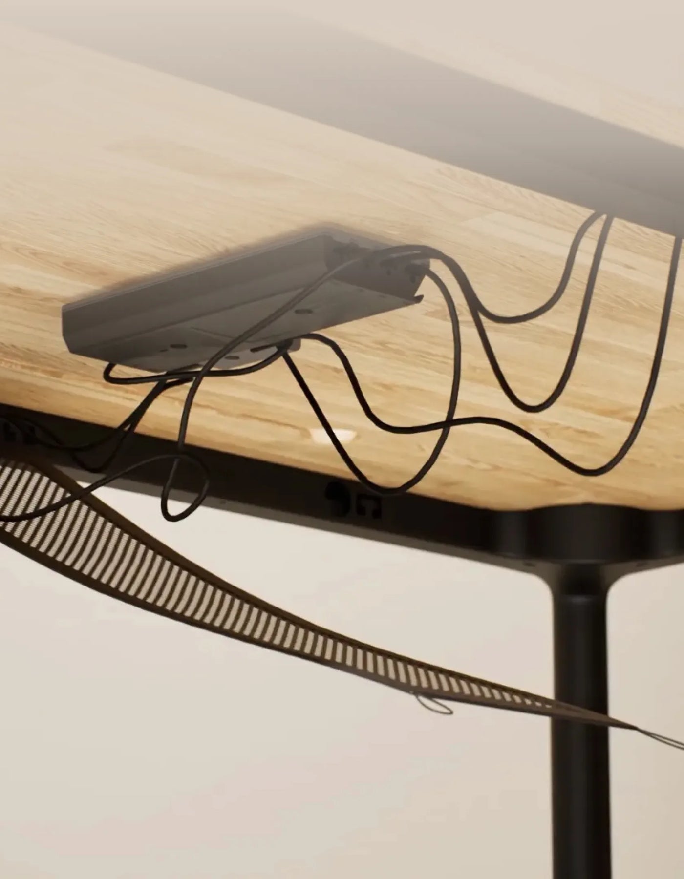 De goot is gemaakt voor sta-bureaus en houdt kabels op hun plek terwijl je bureau omhoog en omlaag kan. Geen gedoe met in de knoop geraakte kabels meer!