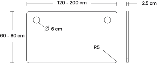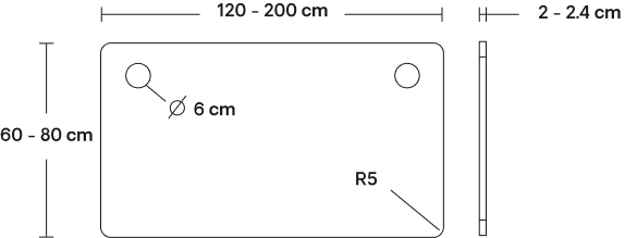 Past op elk tafelblad naar keuze met een breedte van 60 cm tot 80 cm en een lengte van 120 cm tot 200 cm.