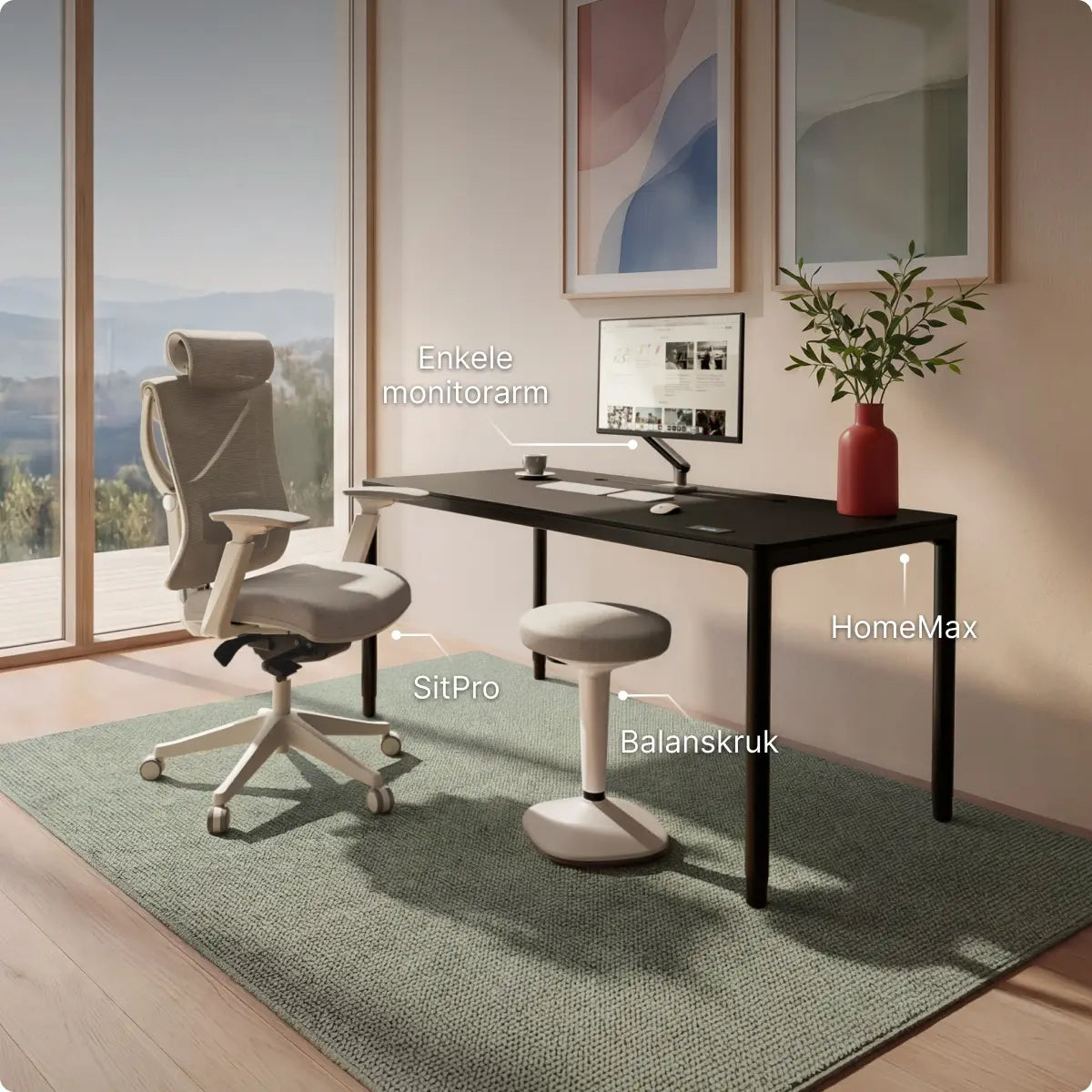 Het HomePro bureau heeft robuuste roestvrijstalen poten, gecombineerd met een 25 mm dik tafelblad van hoogwaardig MFC Panel, afkomstig uit en gemaakt in Europa. Elk tafelblad is gemaakt van gecertificeerde spaanplaat met melamineharscoating, bekend om zijn duurzaamheid en standaardgebruik in veel kantoren in het hele land.
